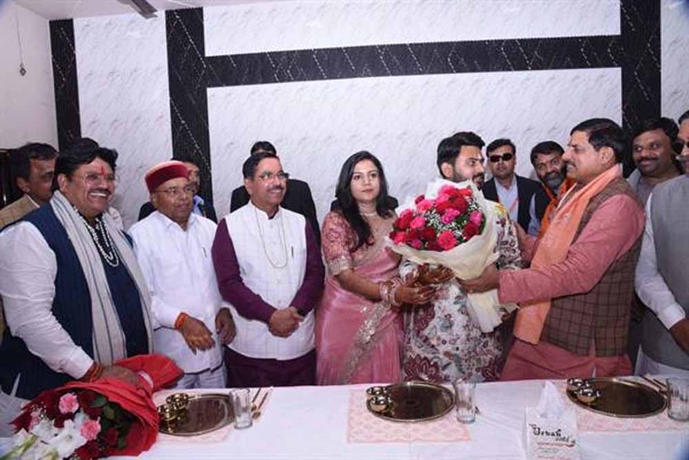 विवाह स्थल पहुंचने पर कर्नाटक के महामहिम राज्यपाल डॉ. थावरचंद गेहलोत और परिजनों ने पुष्पगुच्छ भेंटकर मुख्यमंत्री डॉ. यादव का स्वागत किया। मुख्यमंत्री डॉ. यादव ने नव विवाहित वर-वधू को आशीर्वाद प्रदान किया और स्मृति स्वरूप उन्हें श्रीमद् भगवद गीता की पवित्र प्रतियां उपहार स्वरूप भेंट की।