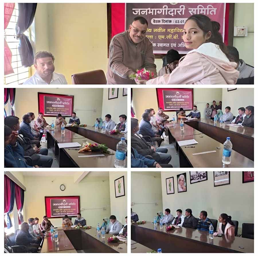 शासकीय नवीन महाविद्यालय जनकपुर में नव गठित जनभागीदारी समिति की प्रथम बैठक जनभागीदारी समिति के अध्यक्ष जिला पंचायत सदस्य रविशंकर सिंह की अध्यक्षता में सम्पन्न हुई।