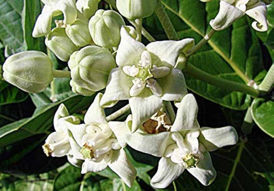 कान और कनपटी में गांठ निकलने एवं सूजन होने पर आक के पत्ते पर चिकनाई लगाकर हल्का गर्म करके बांधते हैं। कान में दर्द हो तो आक के सूखे पत्ते पर घी लगाकर, आग पर सेंककर उसका रस निकालकर ठंडा कर कान में एक बूंद डालें।