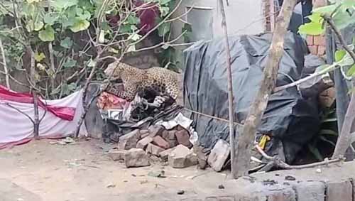 दीवार व जाली के बीच फंसकर वन्य प्राणी तेंदुए की हुई मौत