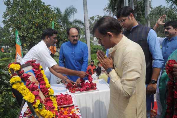 तीनों ही नेताओं ने पुरानी विधानसभा परिसर में पहुंचकर गांधी जी की प्रतिमा पर माल्यापर्ण किया। शर्मा ने कहा कि गांधी जी के विचारों को प्रत्यक्ष रूप से जमीन पर पीएम मोदी ने उतारा है। गांधी जी के विचार और प्रधानमंत्री नरेंद्र मोदी के कारण ही आज भारत देश में स्वच्छ भारत के रूप में जाना जा रहा है।
