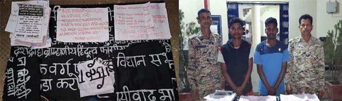 जिले में चलाये जा रहे माओवादी विरोधी अभियान के तहत थाना बीजापुर, डीआरजी एवं बस्तर फाइटर की संयुक्त टीम पेट्रोलिंग पर नयापारा पामलवाया की ओर निकली थी।पेट्रोलिंग के दौरान गोरना-मनकेली की ओर जाने वाली सड़क पर सड़क किनारे पेड़ पर पम्पलेट बैनर लगाते कुछ संदिग्ध नजर आये जिन्हे संयुक्त पार्टी द्वारा घेराबंदी कर दो माओवादिओं को पकड़ा गया। इस दौरान एक नक्सली अंधेरे का फायदा उठाकर भाग खड़ा हुआ । पकड़े गये माओवादियों से पुछताछ पर अपना नाम सहदेव कवासी, पिता लिंगा कवासी, उम्र 20 वर्ष निवासी इसुलनार थाना बीजापुर बताया वहीं दूसरा विधि से संघर्षरत बालक जो आदिवासी बाल संघ का सदस्य है।