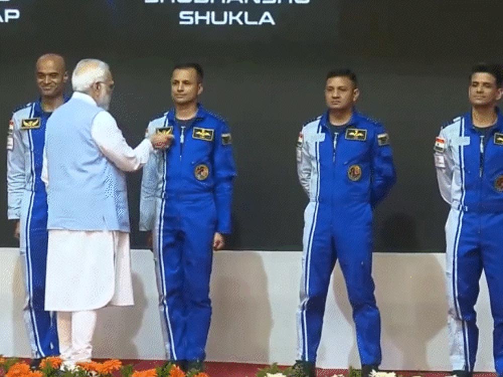 विक्रम साराभाई स्पेस सेंटर पहुंचे प्रधानमंत्री नरेंद्र मोदी ने देश को चुने गए चार एस्ट्रोनॉट्स से रूबरू कराया