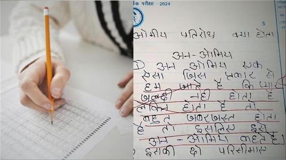 छात्रा की कॉपी में यह सब लिखा देख सभी चौंक गए हैं। इसके अलावा विज्ञान के पेपर में सवाल के जवाब में छात्रा ने प्यार की बातें लिख डाली हैं। सवाल था कि ओमीय और अनओमीय तत्व क्या हैं। जिसके उत्तर में छात्रा ने लिखा कि जिस प्रकार से हम जानते हैं कि प्यार जल्दी नहीं होता है, लेकिन होता है तो बहुत जबरदस्त होता है, तो इसे अन ओमीय कहते हैं। इसके आगे छात्रा ने यह विश्वास भी दिलाया है कि वह मन लगाकर पढ़ाई करेगी। छात्रा ने लिखा है कि जो मेरी कॉपी चेक करेगा, प्लीज आप मुझे बहुत अच्छे मार्क्स देंगे, जिससे मैं और साहसी लड़की बनूंगी।