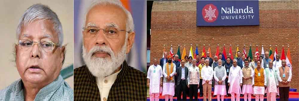 लालू प्रसाद यादव की पार्टी राष्ट्रीय जनता दल ने बिहार में दी गई नौकरियों को मुख्यमंत्री नीतीश कुमार की देन नहीं बताकर 28 जनवरी तक उप मुख्यमंत्री रहे तेजस्वी यादव का विजन बताया था। अब राजद ने प्रधानमंत्री नरेंद्र मोदी को नालंदा विश्वविद्यालय का क्रेडिट लेने के लिए घेरा है। राजद ने कुछ दस्तावेज जारी कर दावा किया है कि प्रधानमंत्री नरेंद्र मोदी की सरकार का नालंदा विश्वविद्यालय में योगदान नहीं है।