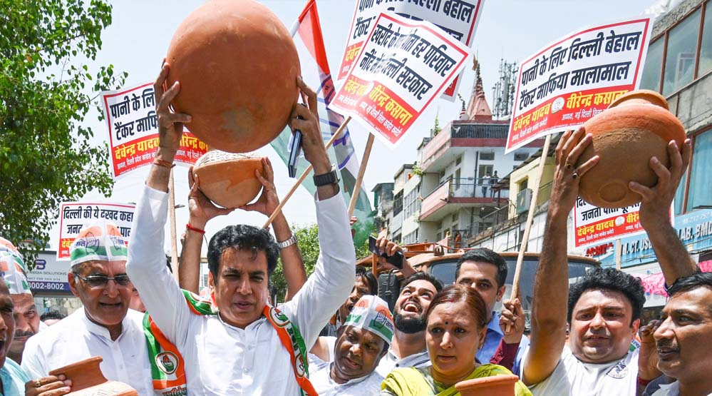 जल संकट को लेकर आप के खिलाफ कांग्रेस का प्रदर्शन