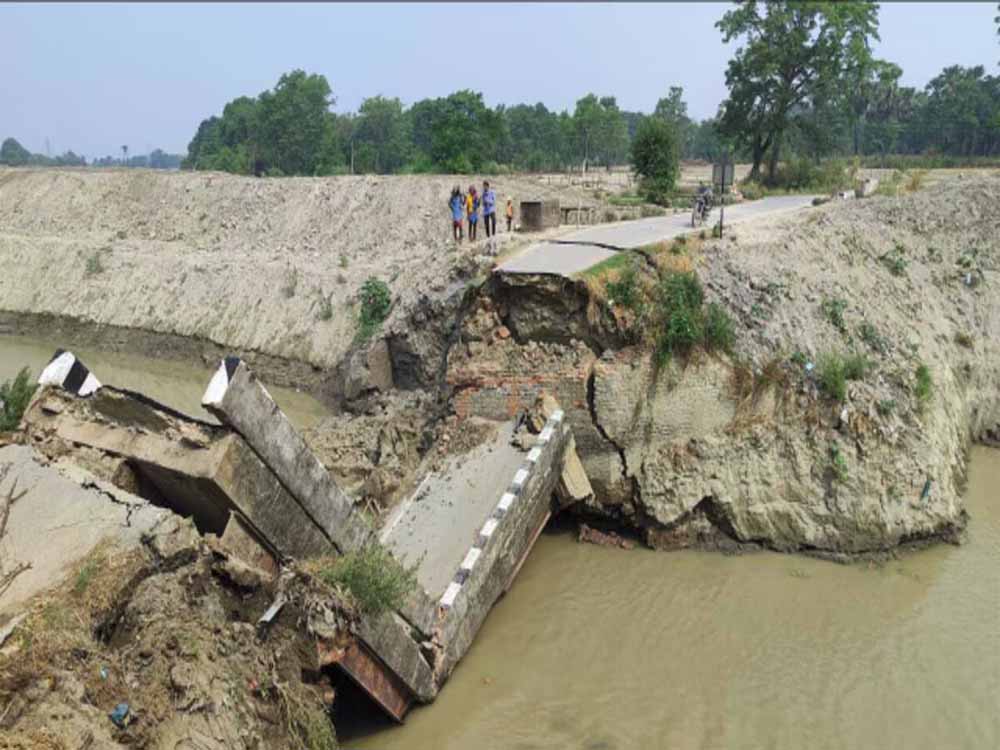 पुलों के धँसने, टूट कर बर्बाद होने का सिलसिला थम नहीं रहा, सीवान में गंडक नहर पर बना पुल तेज आवाज के साथ धड़ाम