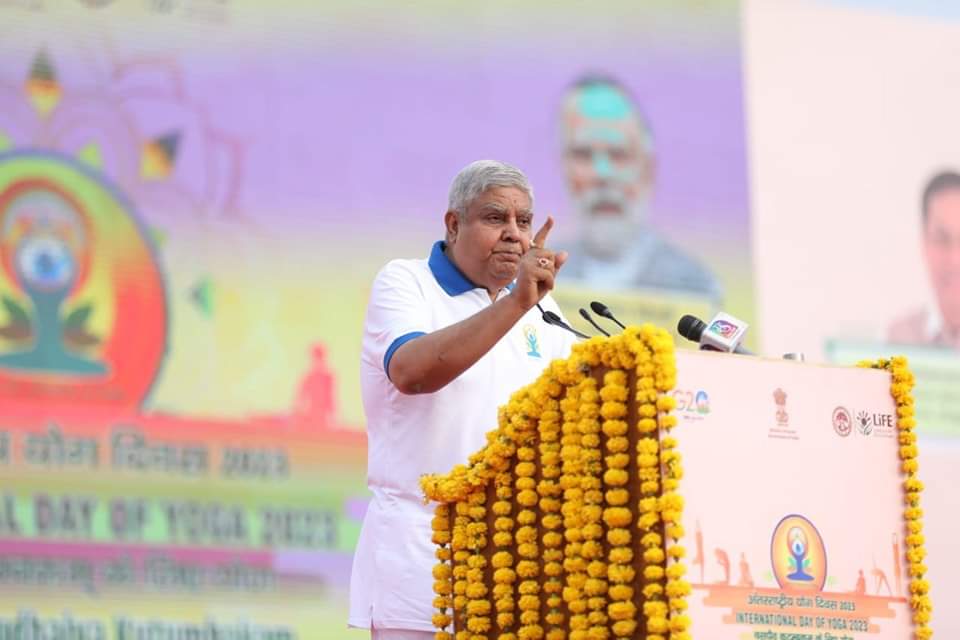 इसलिए योगा हर रोज करना चाहिए। जिससे तमाम प्रकार की परेशानियां दूर होंगी।उपराष्ट्रपति ने कहा कि जी 20 के माध्यम से वसुधैव कुटुंबकम् का संदेश दिया जा रहा है। हर मायने में प्रधानमंत्री नरेंद्र मोदी ने जो भागीरथी प्रयास किया वह सफल हुआ। यह देश के प्रधानमंत्री का ही प्रयास है कि आज योग को अंतराष्ट्रीय स्वीकारोक्ति मिली है जो कि भारत की बड़ी सफलता है। आगे उन्होंने कहा कि योग स्वस्थ जीवन की पूंजी है, इसका सृजन हमारा कर्तव्य है।