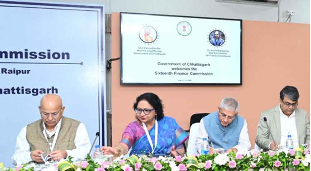 केंद्रीय वित्त आयोग की बैठक आरंभ, मुख्यमंत्री श्री विष्णु देव साय एवं मंत्रिमण्डल के सहयोगी तथा आयोग के अध्यक्ष डॉ. अरविंद पनगढ़िया सहित आयोग के सदस्य तथा अधिकारीगण बैठक में हैं मौजूद। वित्त मंत्री श्री ओ.पी. चौधरी ने राज्य की वित्तीय स्थिति एवं राज्य की आवश्यकताओं के संबंध में आयोग के समक्ष रखी अपनी बात। मुख्य सचिव श्री अमिताभ जैन राज्य के संबंध में प्रजेंटेशन दे रहे।