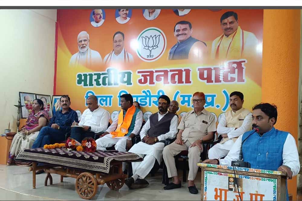प्रदेश नेतृत्व के निर्देशानुसार भारतीय जनता पार्टी जिला डिण्डौरी की भाजपा जिलाध्यक्ष अवध राज बिलैया की अध्यक्षता में जिला कार्यसमिति का आयोजन किया गया, जिसमें मुख्यातिथि के रूप मे म.प्र. सरकार के राज्यमंत्री दिलीप अहिरवार, भाजपा राष्ट्रीय मंत्री ओमप्रकाश धुर्वे, प्रदेश कार्यसमिति सदस्य नरेन्द्र सिंह राजपूत, अजजा मोर्चा प्रदेश महामंत्री पंकज सिंह तेकाम, मौजूद रहें।  सर्वप्रथम सभी मंचासीन अतिथियों ने भारत माता, पं. दीनदयाल उपाध्याय, डाॅ. श्यामा प्रसाद मुखर्जी जी के तेलीय चित्र पर माल्यार्पण कर बैठक की शुरूआत की। म.प्र. शासन के राज्यमंत्री दिलीप अहिरवार का शाॅल श्रीफल भेंट कर पुष्पगुच्छ से भाजपा जिलाध्यक्ष अवधराज बिलैया ने स्वागत किया। भाजपा जिलाध्यक्ष अवध राज बिलैया ने संबोधित करते हुए कहा कि मुख्यमंत्री लाडली बहना योजना के अन्तर्गत हर बहनों को 1250 रूपये एवं रक्षाबंधन पर्व के लिए अलग से 250 रूपये की उपहार राशि का डिजीटल रूप से हर बहनों के खाते में हस्तांरित किया जायेगा।