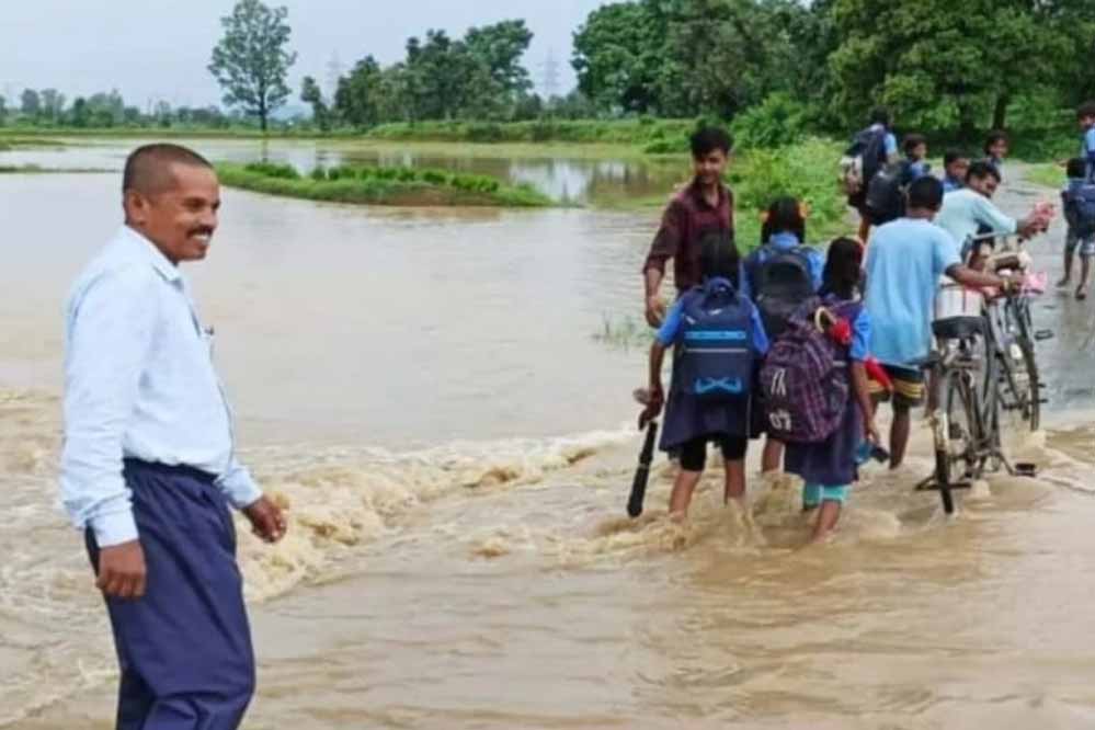 बच्चे उसे पार कर अपने स्कूल तक पहुंच रहे हैं। बच्चों की सुरक्षा को देखते हुए विद्यालय के शिक्षक छुट्टी के बाद नदी-नालों को सुरक्षित पार करा रहे हैं। इसके अलावा एमसीबी जिले और कोरिया जिले के कई ग्रामीण क्षेत्रों में बच्चे नदी नाले को पार कर स्कूल पहुंच रहे हैं, जो कि बच्चों के लिए खतरनाक साबित हो सकता है। पुल के ऊपर से पानी का बहाव… स्कूली बच्चें कर रहे आना-जाना कोरिया जिले में कलेक्टर ने दिए छुट्टी के आदेश वहीं कोरिया जिले में भारी बारिश के कारण बच्चों की सुरक्षा को देखते हुए कलेक्टर ने 7 और 8 अगस्त को स्कूलों में बच्चों के लिए अवकाश घोषित करने का आदेश जारी कर दिया। कोरिया जिले के साथ एमसीबी जिले में बीते कई दिनों से रूक-रूक कर हो रही झमाझम बारिश तो कभी हल्की बारिश का दौर जारी है। इसके चलते नदी-नालों में जलस्तर बढ़ गया है। कोरिया जिले में 7 अगस्त को सुबह 8 बजे से बारिश की शुरूआत हुई, जो घंटों चलती रही।