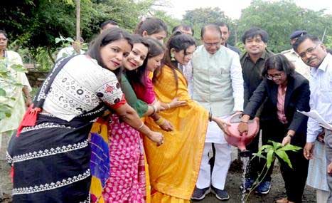 मुख्यमंत्री शिवराज सिंह चौहान ने श्यामला हिल्स स्थित उद्यान में आम, गुलमोहर और करंज के पौधे रोपे। मुख्यमंत्री चौहान के साथ बालक अमरेंद्र सिंह, बालिका प्रकृति चौहान, हिमांशु अग्रवाल और सुनिधि सिंह ने अपने जन्मदिवस पर पौधे रोपे।