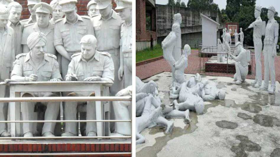 कॉम्प्लेक्स में बनी मूर्तियां उस वक्त की जब 1971 की जंग के बाद पाकिस्तान ने सरेंडर किया था. इस इसमें पूर्वी पाकिस्तान (अब बांग्लादेश) में पाकिस्तानी सेना के कमांडर लेफ्टिनेंट जनरल आमिर अब्दुल्ला खान नियाजी को निर्णायक हार स्वीकार करते हुए और 1971 में ईस्टर्न थिएटर में भारतीय और बांग्लादेशी सेना के जनरल ऑफिसर कमांडिंग-इन-चीफ (GOC-in-C) लेफ्टिनेंट जनरल जगजीत सिंह अरोड़ा की मौजूदगी में ढाका में 'आत्मसमर्पण का साइन' करते हुए दिखाया गया है. इस घटना को दुनिया का सबसे बड़ा सरेंडर कहा जाता है.