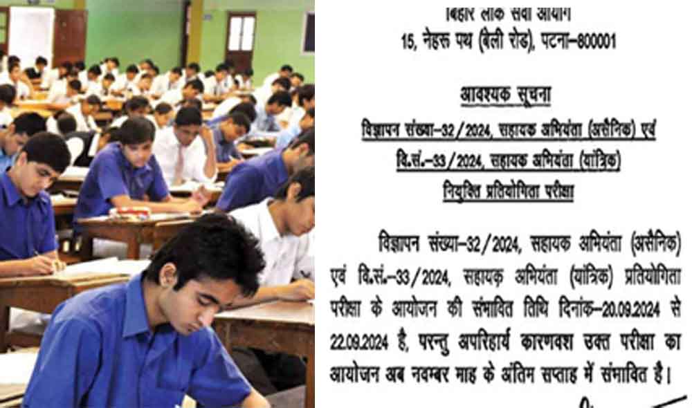 आयोग से अधिसूचना में कहा है कि परीक्षा नवंबर में होने की संभावना है। इससे पहले यह परीक्षा 20 से 22 सितंबर, 2024 तक आयोजित होने वाली थी। भर्ती अभियान का उद्देश्य कुल 118 रिक्तियों को भरना है, जिनमें से 113 रिक्तियां सहायक अभियंता (सिविल) के पद के लिए और 5 सहायक अभियंता (मैकेनिकल) के पद के लिए हैं। आयोग ने नोटिस जारी करते हुए कहा, कि अपरिहार्य कारणों से स्थगित कर दी है। अधिसूचना के अनुसार, परीक्षा नवंबर 2024 के अंतिम सप्ताह में आयोजित होने की संभावना है।