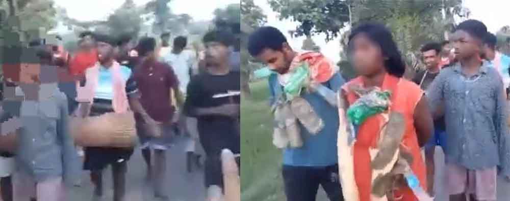 झारखंड के साहिबगंज जिले के मिर्जाचौकी थाना क्षेत्र में शर्मशार करने वाली एक घटना सामने आई है। यहां के बच्चा पंचायत के एक गांव में एक कथित प्रेमी युगल को पकड़ कर जूता-चप्पल का माला पहनाकर सरेआम सड़कों पर घुमाने का वीडियो वायरल हुआ है। यह मामला दो दिन पहले का है। इस मामले में संबंधित चौकीदार मजुबा मड़ैया की लिखित शिकायत पर मिर्जाचौकी थाना में 11 सितंबर की देर शाम को 15-20 अज्ञात लोगों के खिलाफ केस दर्ज कर पुलिस मामले की छानबीन में जुटी है।