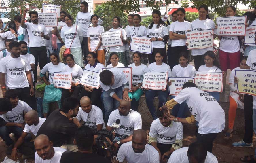 सामूहिक मुंडन करवाकर विरोध कर रहे सब इंस्पेक्टर भर्ती के अभ्यर्थियों को पुलिस ने तेलीबांधा जलाशय के पास से खदेड़ा। उसके बाद सभी अभ्यर्थी नवा रायपुर के तूता धरना स्थल पहुंचे जहां उन्होंने जमकर नारेबाजी करते हुए फिर से अपना विरोध जताया। इससे पहले युवकों ने मुंडन कराया और युवतियों ने प्रतिकात्मक रूप से अपनी चोटी का सिरा कटवाकर विरोध प्रदर्शन किया।