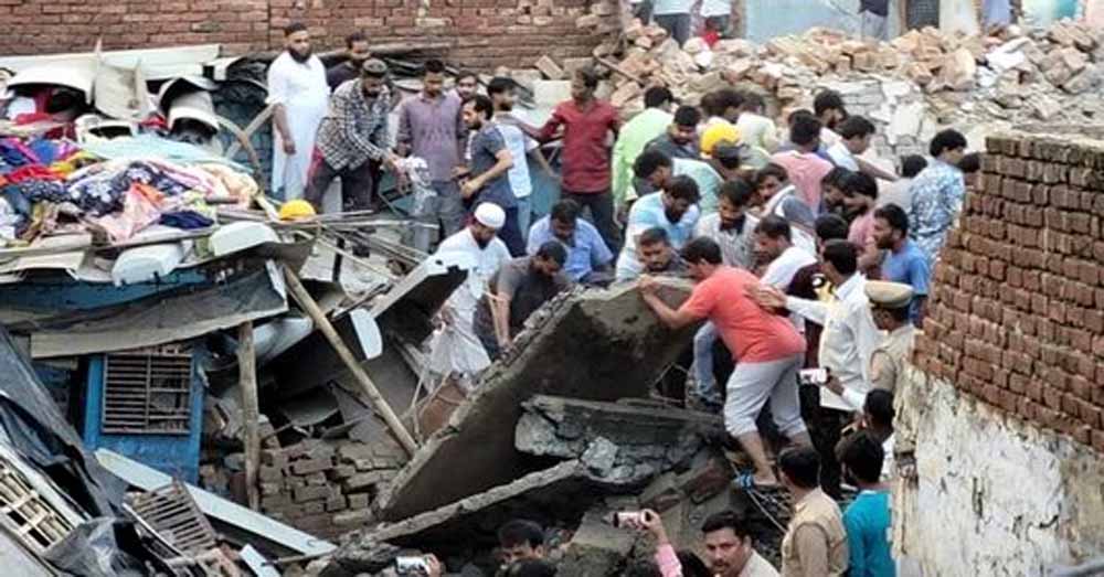 लोहिया नगर क्षेत्र में जाकिर कॉलोनी में तीन मंजिला मकान धसा, एक ही परिवार के 9 लोग दबे