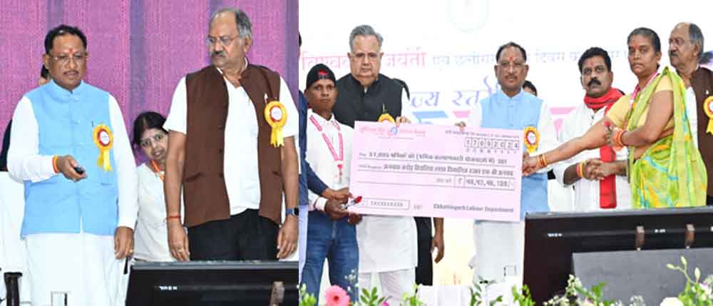 मुख्यमंत्री श्री विष्णु देव साय विश्वकर्मा जयंती के अवसर पर इंदिरा गाँधी कृषि विश्वविद्यालय स्थित कृषि मंडप में राज्यस्तरीय श्रमिक सम्मेलन में शामिल हुए। सम्मेलन में विधानसभा अध्यक्ष डॉ रमन सिंह, उपमुख्यमंत्री श्री विजय शर्मा, सांसद श्री बृजमोहन अग्रवाल, विधायक श्री ख़ुशवंत साहेब, श्री मोती लाल साहू, श्री अनुज शर्मा उपस्थित रहे। सम्मेलन में मुख्यमंत्री श्री साय ने 57 हजार श्रमिकों के खातों में 49.43 करोड़ रुपए की राशि डी.बी.टी. के माध्यम से ट्रांसफर किया।