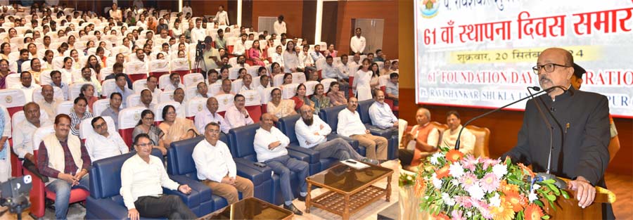 विश्वविद्यालय को गौरव दिलाने के लिए  उत्साह के साथ और कड़ी मेहनत करें ताकि यह देश के शीर्ष 100 विश्वविद्यालयों में शामिल हो सके। राज्यपाल श्री रमेन डेका ने आज पंडित रविशंकर शुक्ल विश्वविद्यालय के 61वें स्थापना दिवस समारोह में उक्त बातें कहीं।