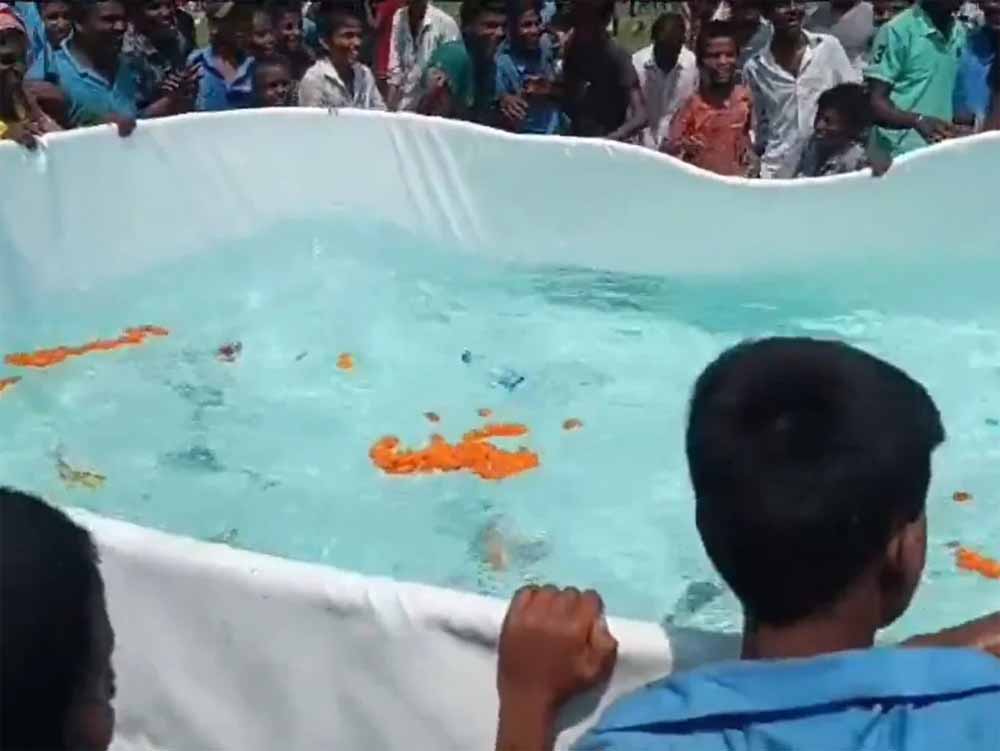 वायरल वीडियो में भीड़ बायोफ्लोक को खिंचते हुए नजर आ रही है। वहीं, बच्चे अंदर कूद रहे हैं। लोग मछलियां लूट रहे हैं। रिपोर्ट्स के मुताबिक लोगों की लूट की वजह से मत्स्य विभाग का हजारों का नुकसान हो गया। जब लोग मछलियां लूट रहे थे, तो वहां सरकारी पदाधिकारी भी मौजूद थे। मगर वे भी उन्हें रोकने में नाकाम रहे।