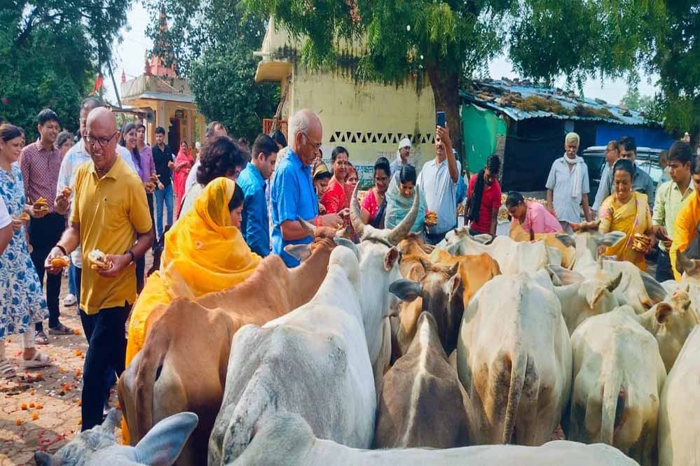 गौशाला में हुआ वृद्ध, अपाहिज गायों के लिए विशाल भंडारा