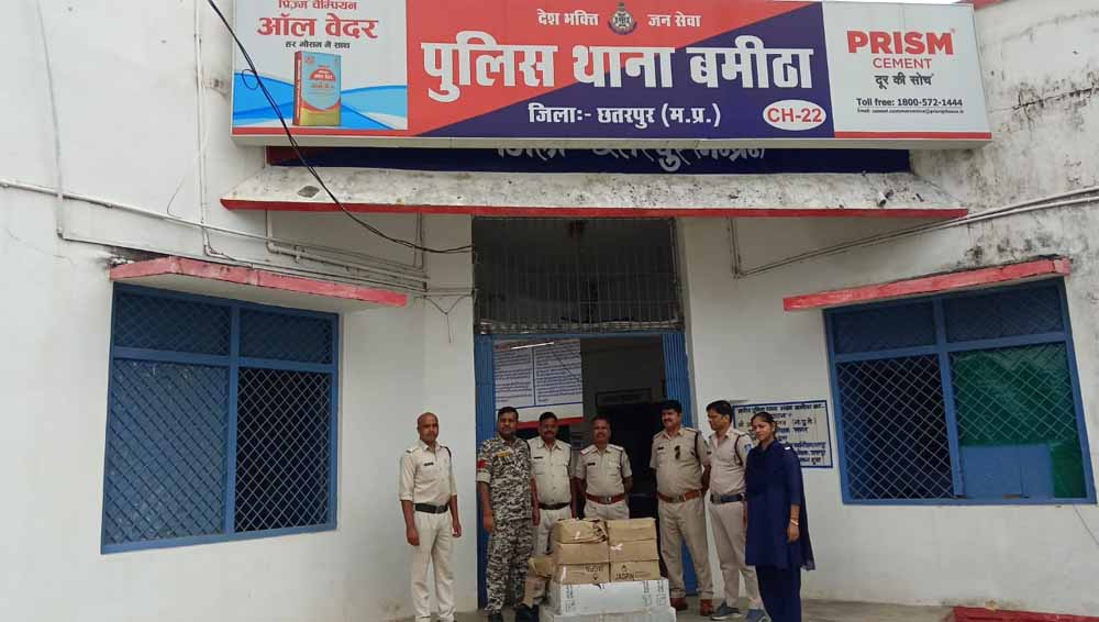 थाना बमीठा पुलिस ने रात्रि में ग्राम बमारी में छापामार कार्यवाही कर 8 पेटी, 72 लीटर अवैध शराब की जप्त
