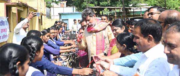 जगदलपुर. जगदलपुर शहर के शासकीय उच्चतर माध्यमिक विद्यालय कन्या क्रमांक 2 परिसर ,हाई स्कूल पंडरीपानी , महारानी लक्ष्मीबाई परिसर, पनारापारा, केवरा मुंडा, भैरमगंज, जगतु माहरा विद्यालय परिसर (बस्तर हाई स्कूल), हाटकचौरा में सरस्वती साइकिल योजना अंतर्गत भाजपा प्रदेश अध्यक्ष एवं विधायक किरण देव ने 326 छात्राओं को साइकिल का वितरण किया।