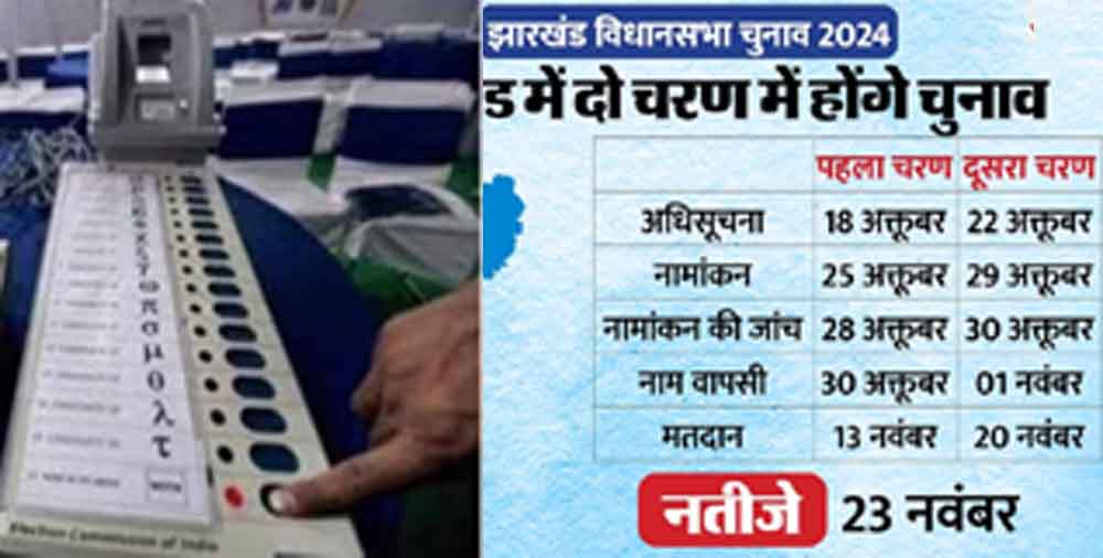 वहीं दूसरे चरण के चुनाव की अधिसूचना 22 अक्तूबर को जारी होगी। नामांकन 29 अक्तूबर से होंगे। नामांकन पत्रों की जांच 30 अक्तूबर को होगी। जबकि नाम वापसी एक नवंबर को होगी। दूसरे चरण का मतदान 20 नवंबर को होगा। नतीजे 23 नवंबर को आएंगे। मुख्य चुनाव आयुक्त ने बताया कि झारखंड में कुल मतदाता 2.06 करोड़ हैं। इनमें से पुरुष मतदाता 1.31 करोड़ और महिला मतदाता 1.29 करोड़ हैं। इसके अलावा झारखंड में कुल युवा मतदाता 66.84 लाख हैं। जबकि फर्स्ट टाइम वोटर 11.84 लाख और दिव्यांग मतदाता 3.67 लाख हैं। साथ ही यहां पर थर्ड जेंडर मतदाता 448 हैं। इसके साथ ही सौ साल से ऊपर वाले मतदाता 1706 और 85 वर्ष से ऊपर के मतदाता 1.14 लाख हैं। मुख्य चुनाव आयुक्त राजीव कुमार ने बताया कि झारखंड में कुल 29562 मतदान केंद्र होंगे। इसमें 20221 लोकेशन पर मतदान केंद्र हैं। इसमें 5042 मतदान केंद्र शहरी क्षेत्र और 24520 मतदान केंद्र ग्रामीण इलाकों में होंगे। आयोग के मुताबिक हर मतदान केंद्र पर औसत 881 मतदाता मताधिकार का प्रयोग करेंगे। उन्होंने बताया कि झारखंड में कुल 81 विधानसभा सीटों में से सामान्य सीटें 44, एसटी सीटें 28 और एससी नौ हैं। मुख्य चुनाव आयुक्त राजीव कुमार ने बताया कि पिछली बार झारखंड में पांच चरण में मतदान हुआ था। इस बार इसे दो चरण में कराया जाएगा। बता दें कि झारखंड में मौजूदा समय में झारखंड मुक्ति मोर्चा, कांग्रेस, राजद गठबंधन की सरकार है। 2019 के विधानसभा चुनाव में झारखंड मुक्ति मोर्चा को 30, भाजपा को 25 और कांग्रेस को 16 सीटें मिली थीं। इसके अलावा जेवीएम को तीन, एजेएसयूपी को दो और अन्य को पांच सीटें मिली थीं। मौजूदा समय में झारखंड में हेमंत सोरेन मुख्यमंत्री हैं।
