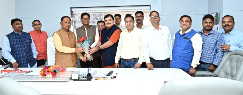 मुख्यमंत्री विष्णु देव साय से छत्तीसगढ़ कर्मचारी अधिकारी संयुक्त मोर्चा के प्रतिनिधि मंडल ने मुलाकात कर राज्य के कर्मचारियों के लिए चार प्रतिशत महंगाई भत्ता (डीए) की घोषणा पर उनके प्रति आभार व्यक्त किया द्य प्रतिनिधि मंडल ने मंत्रालय महानदी भवन में मुख्यमंत्री से मुलाकात कर आभार प्रकट किया।