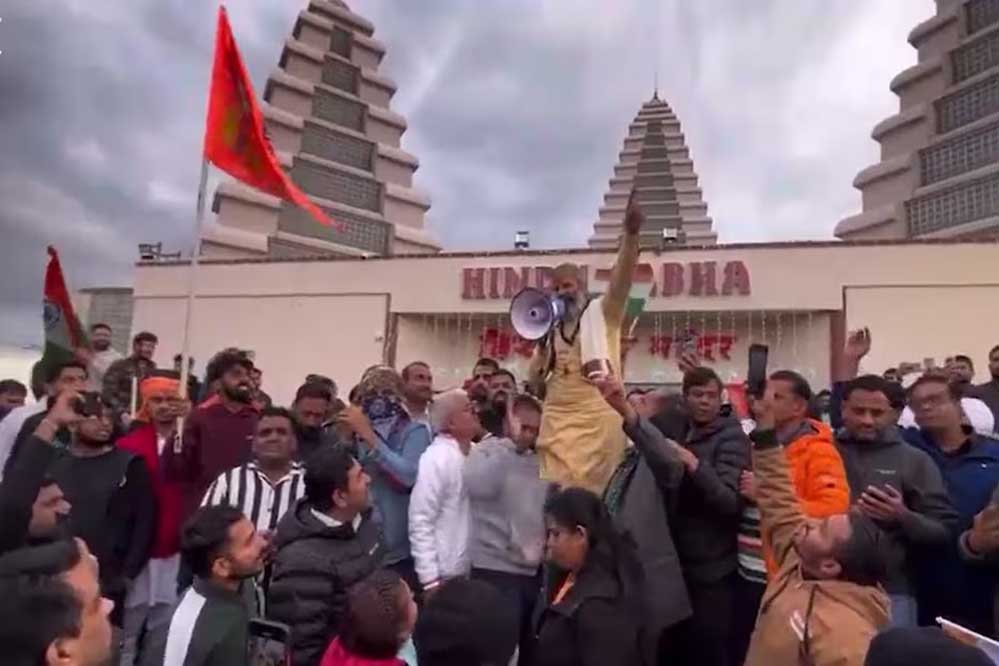 हिंदू सभा मंदिर के बाहर एकजुट हिंदुओं ने 'भारत माता की जय' के नारे भी लगाए. पुजारी का कहना था कि सिर्फ नारे नहीं लगाने हैं. ये हमला सिर्फ हिंदू सभा पर नहीं है, बल्कि पूरी दुनिया के हिंदुओं पर हुआ है. आज वो समय आ गया है, जब हम लोगों को एकजुट होने की जरूरत है. हमें अपने बारे में ही नहीं, बल्कि आने वाले समय के बारे में भी सोचना होगा. सबको एक होना पड़ेगा. हम किसी का भी विरोध नहीं करते हैं. लेकिन कोई अगर हमारा विरोध करेगा तो… उसके बाद फिर नारेबाजी होने लगती है.