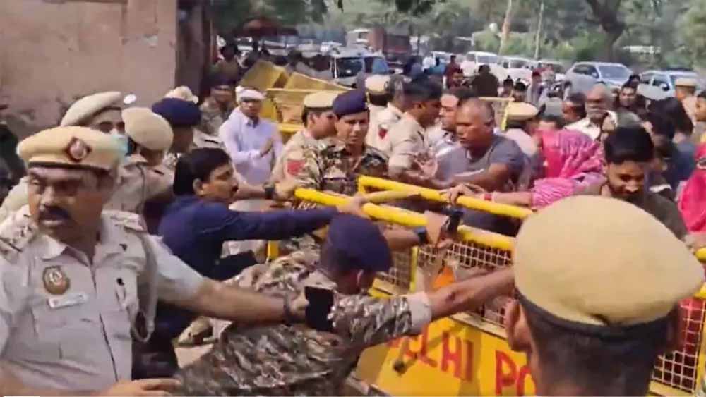 पुलिस और लोगों के बीच हुई धक्का-मुक्की