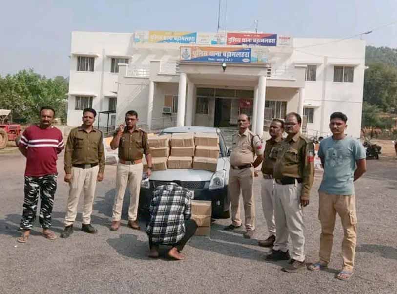 रात्रि रोड पेट्रोलिंग के दौरान थाना बड़ा मलहरा पुलिस को बिजावर से बड़ा मलहरा तरफ अवैध शराब ले जाने की सूचना प्राप्त हुई। थाना बड़ा मलहरा पुलिस त्वरित कार्यवाही करते हुए गंज तिगैला के पास पहुँची। बिजावर की ओर आ रही स्विफ्ट कार को संदेह के आधार पर रोक कर चेकिंग की गई। कार के अंदर भारी मात्रा में 25 पेटी अवैध शराब रखी मिली। चालक से पूछताछ की गई, वैध दस्तावेज नहीं थे। आरोपी चालक से अवैध शराब 25 पेटी 225 लीटर देशी प्लेन अवैध शराब एवं तस्करी में प्रयुक्त वाहन स्विफ्ट कार कुल कीमत करीब 3 लाख रुपए जप्त कर अभिरक्षा में लिया गया।