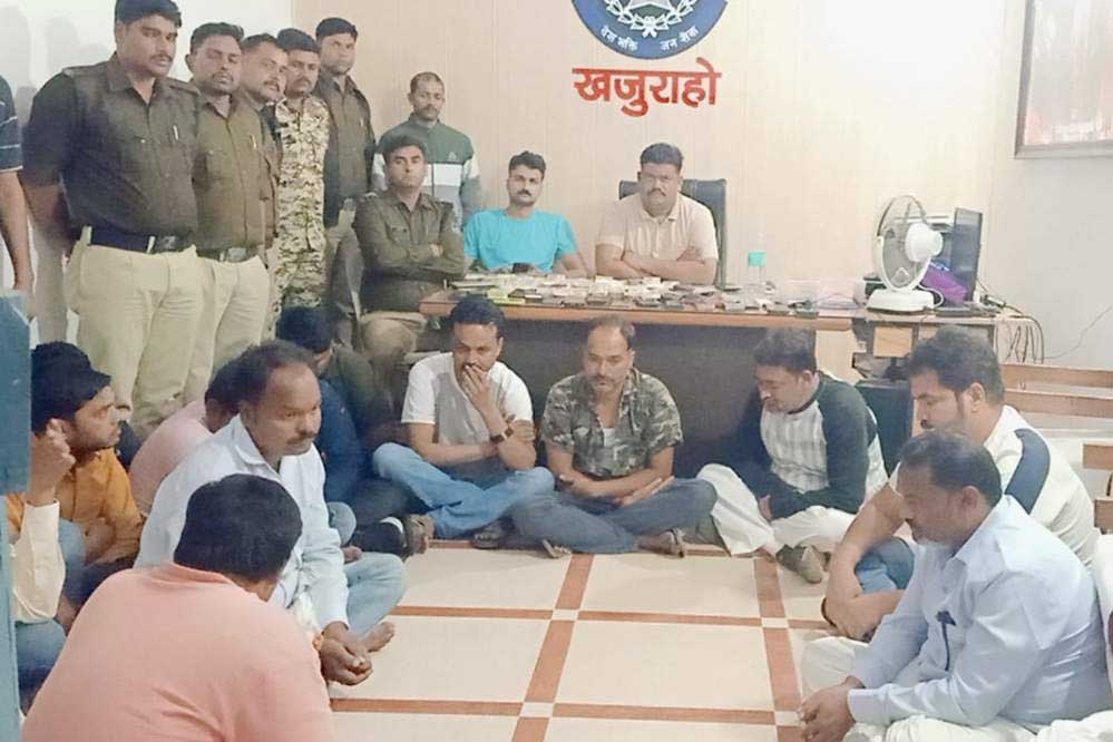 हाल ही में छतरपुर जिले में जुआरियों के कई वीडियो वायरल होने के बाद पुलिस ने सख्त कदम उठाया है। छतरपुर के एसपी अगम जैन के निर्देशन में नौगांव एसडीओपी चंचलेश मलगाम ने एक टीम गठित कर खजुराहो के होटल सारांश में छापेमारी की। इस दौरान पुलिस ने 20 लाख रुपए नकद, 20 मोबाइल फोन और 6 इनोवा कारें भी जब्त की है।