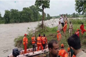टीकमगढ़ : महोबिया में टापू पर फंसे दो लोग, एनडीआरएफ की टीम ने बचाया